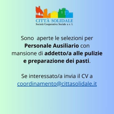 Se interessato/a invia il C.V a coordinamento@cittasolidale.it