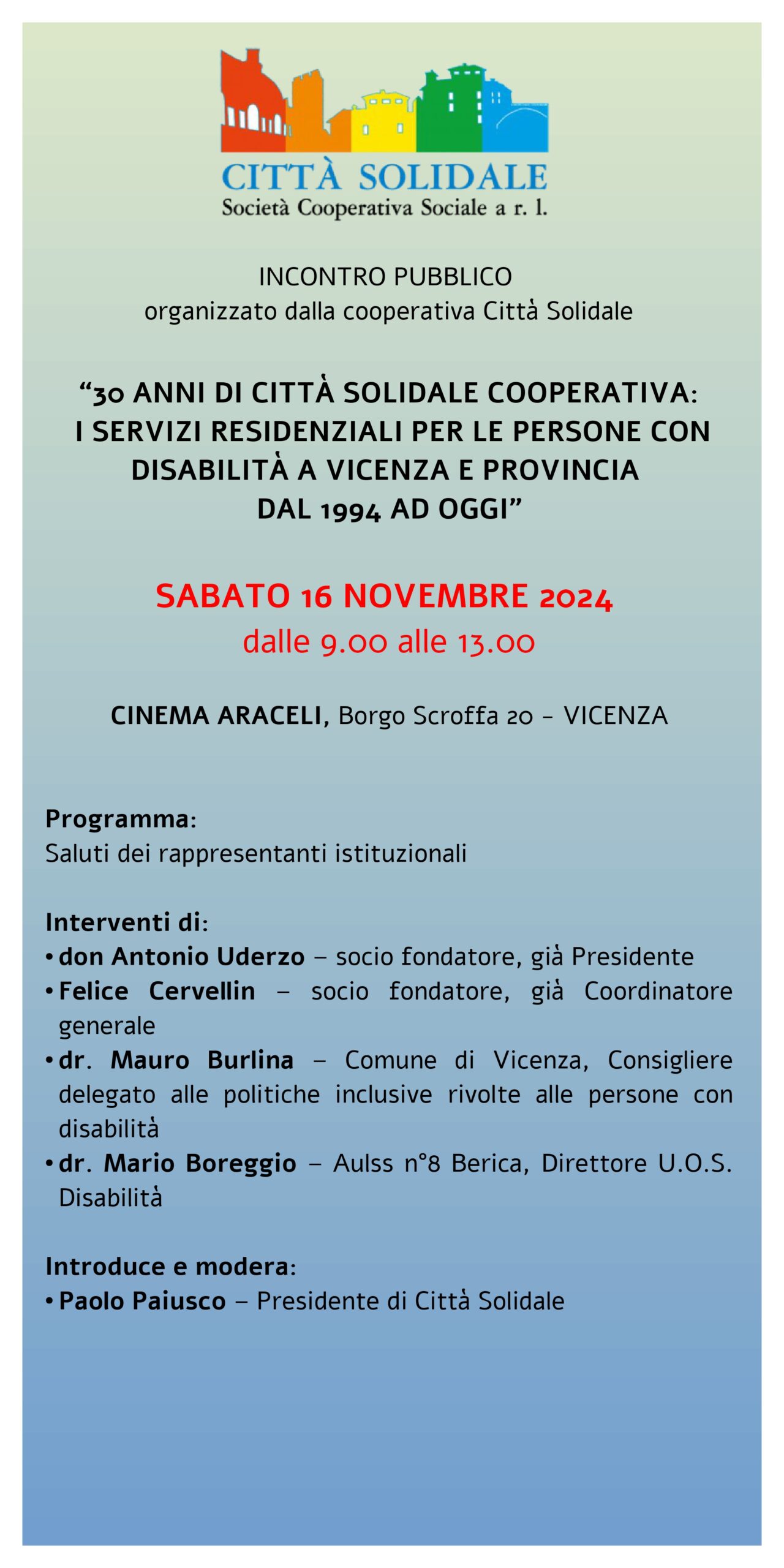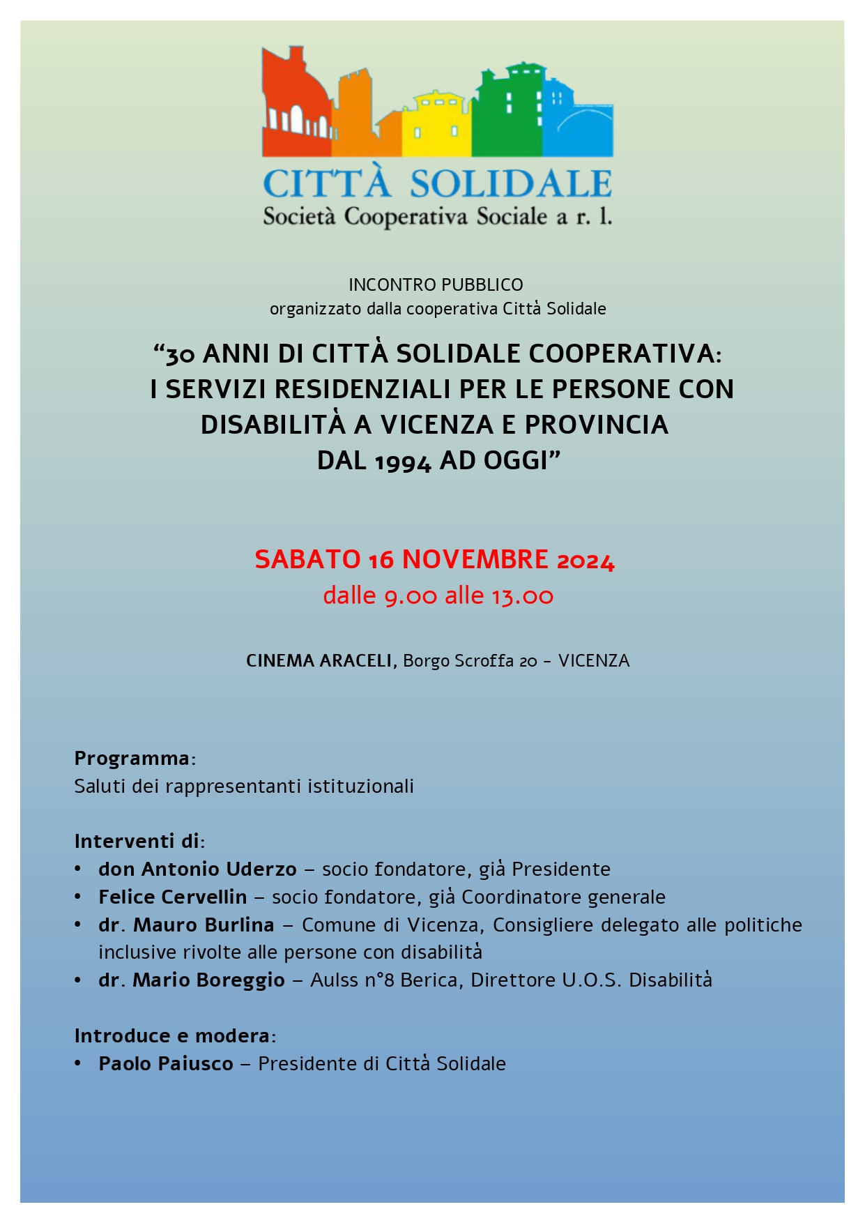 “30 ANNI DI CITTA’ SOLIDALE COOPERATIVA”