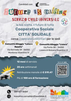 I Servizi accreditati della Cooperativa per accogliere 1 volontario ciascuno sono la comunità Luisa e Renato (di Montorso Vicentino) e la comunità Lisiera (di Bolzano Vicentino).
