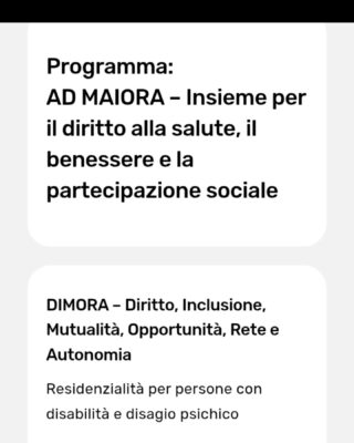 Scopri il Programma AD MAIORA – Progetto DIMORA – diritto, inclusione, mutualità, opportunità, rete e autonomia e le nostre due sedi.