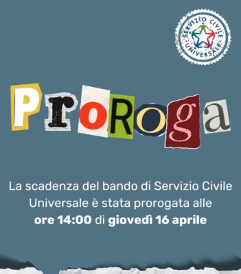 La SCADENZA del BANDO di Servizio Civile Universale è stata PROROGATA alle ore 14.00 di GIOVEDI 16 APRILE